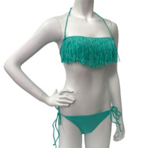 Бирюзовый купальник с бахромой на лифе