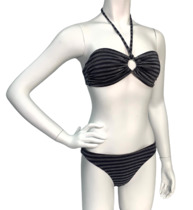 Черный купальник в серую полоску