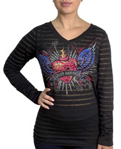 Женская кофта в полоску от Harley-Davidson - спереди принт "сердце с крыльями" №