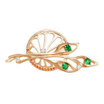 Позолоченная брошь "Зеленое яблоко" - 1301 - п