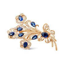 Позолоченная булавка "Снежинка" с голубыми фианитами - 665 - п