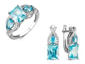 Металл: серебро; Тип вставки (камня): фианиты; Проба: 925; Цвет вставок: голубой, б\ц; Вес: 6.6 г— Описание у На сайте поставщика
