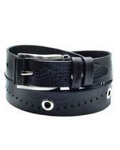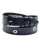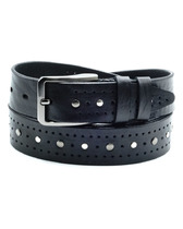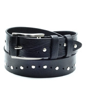 Ремень джинсовый ручной работы с заклепками и перфорацией. Кожа черного цвета.