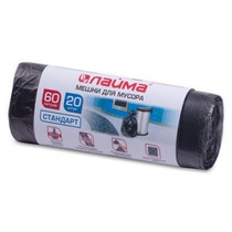 Мешки для мусора 60 л, черные, в рулоне 20 шт., ПНД, 10 мкм, 60х70 см (±5%), ста