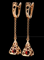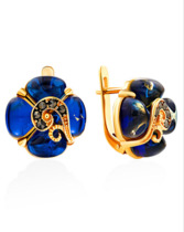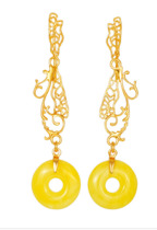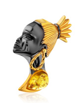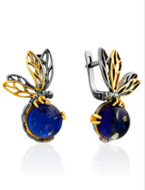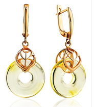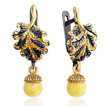 Изящные серьги в необычном дизайне из золочённого серебра и натурального янтаря