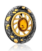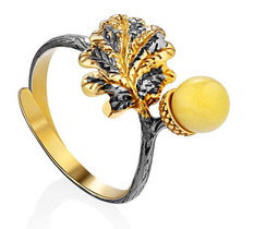 Оригинальное серебряное кольцо с частичным золочением, украшенное янтарём