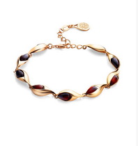 браслет из золоченного серебра и янтаря вишнёвого цвета