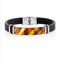 браслет на каучуковой основе, украшенный янтарной мозаикой