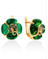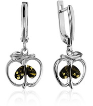 Яркие серьги с янтарём изумрудного цвета и марказитами
