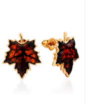Чудесные серьги-гвоздики из вишнёвого янтаря