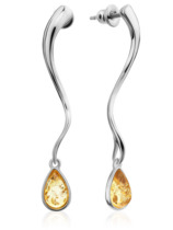 Удлинённые серьги из натурального медового янтаря в позолоченной оправе