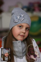 Удл.шапочка светло-серая с бантом Дабл