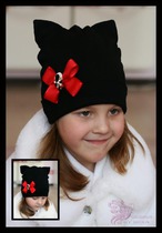 Шапка-кошка черная с красным бантом