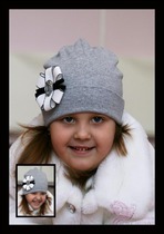 Серая шапочка с композицией из атласных розочек