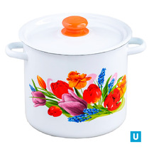 набор 17 белый с деколью на крышке Рамо   кастрюли цилиндр.: 3,5л,  5,5л и 8л