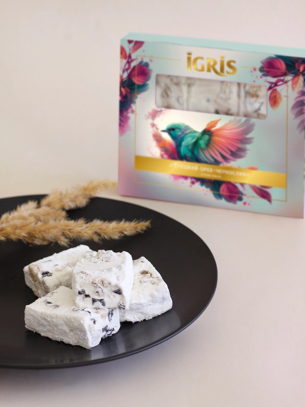 Нежнейшая нуга с добавлением отборного грецкого ореха и чернослива.