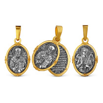 Подвеска двойная из чернёного серебра с золочением - святой Николай Чудотворец,