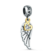 Подвеска-шарм из чернёного серебра с фианитами и позолотой - Крыло и сердце 6200