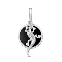 Подвеска из серебра с чёрным агатом и фианитами родированная - Ящерка 925 пробы