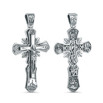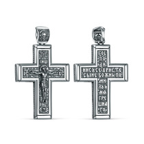 Крест из чернёного серебра - Распятие, Спаc Неpукотвоpный, Спаси и сохрани, Арха