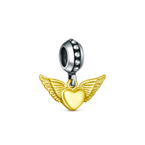 Подвеска-шарм из чернёного серебра с золочением - Сердце с крыльями 620038зч