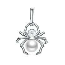 Подвеска из серебра с жемчугом Swarovski и фианитом родированная - Паук 925 проб