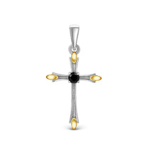 Подвеска-крест из родированного серебра с нат.шпинелью и золочением - 2,4 см 925