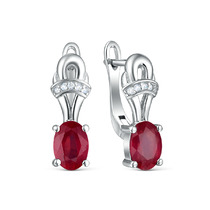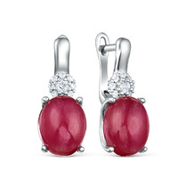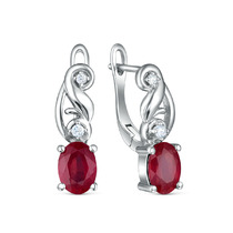 Серьги из серебра с рубином и кубическим цирконием родированные 925 пробы GTE-46