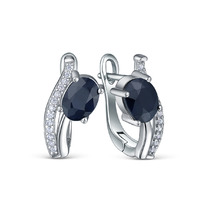 Серьги из серебра с сапфиром и кубическим цирконием родированные 925 пробы GTE-0