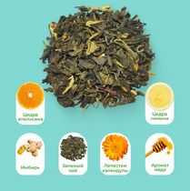 Чай зеленый с имбирем и медом (Имбирный) пирамидки