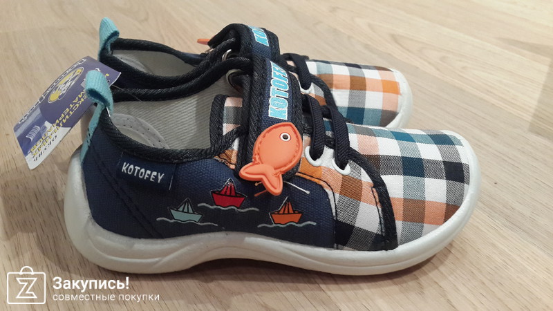 25 размер. По стельке 16,5см. Нога у ребенка 15,5см, внешне видно, что обувь не пропорционально туловищу))) но внутри запас не такой уж и большой кажется. Запаха нет. Упакованы были в фирменную коробку Котофея. Шнурок-обманка, это резинка. На сайте поставщика они темнее, мне попались посветлее. Стелька очень интересная: и дышит, и впитывает))) еще и каркасная.