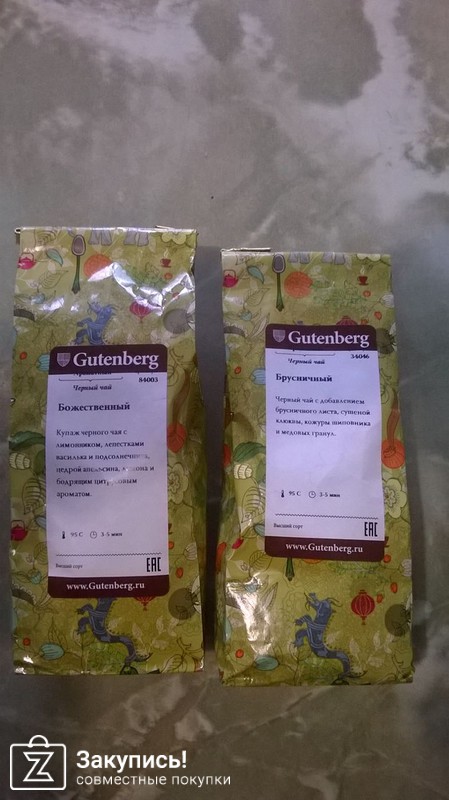 Пробовали с мужем несколько чаев из закупки. Вот наши с ним общие фавориты - Gutenberg Красный молочный чай и Gutenberg чёрный ароматизированный \"Сливовица\". Сейчас заказала эти чаи уже по 500 грамм. Как раньше без них жили, не понимаю. Наташа, спасибо за закупку! Жизнь моей семьи стала вкуснее и ароматнее!