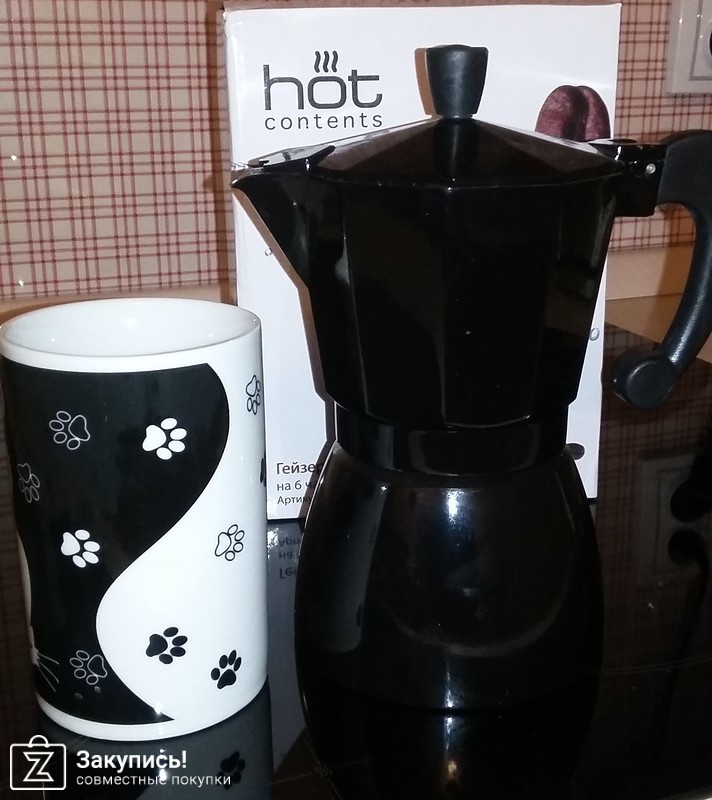 Приобрела вот такую чудную гейзерную кофеварку за смешные деньги. По акции стоила всего 599р. на фото - на 6 чашек (да ладно! на обычную нормальную кружку, не более). довольна аки слон!