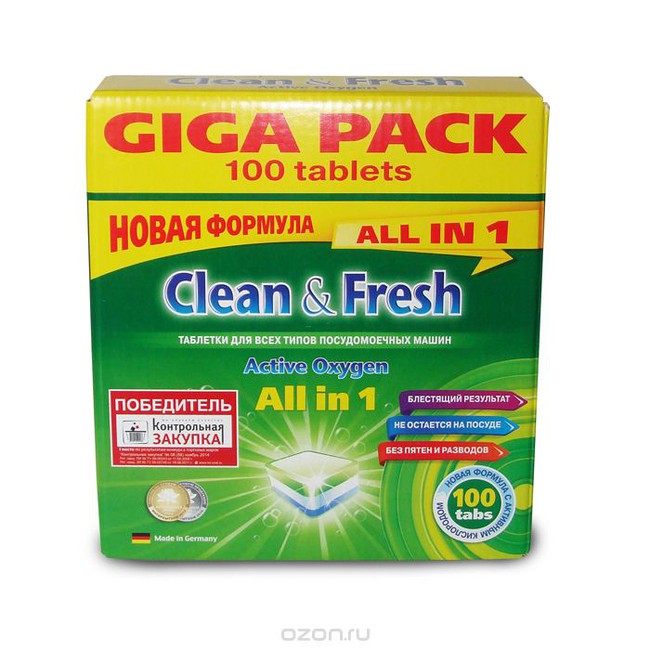 Моей посудомоечной машине 10 лет, мыла посуду на троечку с плюсом, с Финишем - на четверку. Посуду достанешь, а она местами не промыта.Больше разочарования, чем пользы. Да и таблетки в магазине дорогущие. Решила продать эту несчастную машину, пока не попробовала использовать таблетки clean&fresh. Моя машинёшка ожила, работает почти без продыха (семья из 6 человек, посуды грязной -гора), отмывает на отлично даже с половиной таблетки (если посуда не очень грязная или её немного), и у посуды нет резкого запаха, как от Финиша.