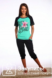 Получила домашний комплект № 4 Б Код: 4бп. Отлично сшит. Трикотаж плотный, но большемерит. В 46размере ширина футболки 48см, бриджи по бедрам 49.