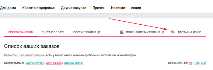 Здравствуйте! Доставки и перемещения нужно заказывать в личном кабинете, справа вверху кнопка "Доставка из ЦР" - Заказать доставку. https://zakupis-ekb.ru/index.php?do=orders&act=myo