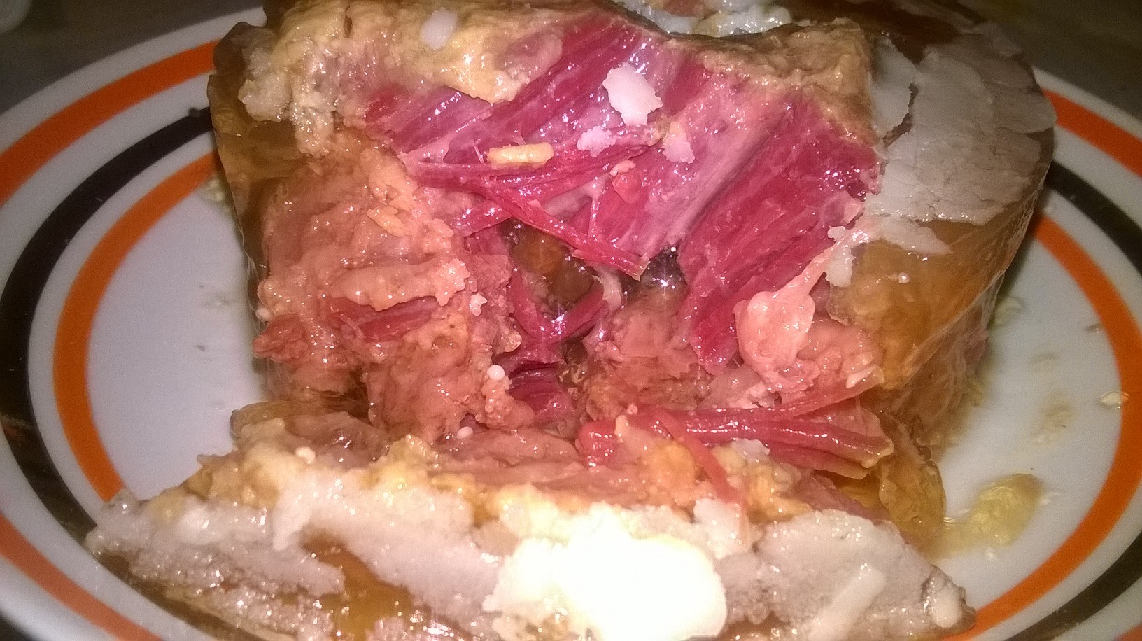 Сверху в банке фасоль белая, фасоль стручковая, горошек зеленый, где-то 1/3 банки филе куриное с луком и морковью в томатном соусе, с припправами. Блюдо вкусное, в меру острое, понравилось, можно подавать как отдельное блюдо, а также с каким-нибудь гарниром. В качестве гарнира я отварила макароны, вполне удачное сочетание.
