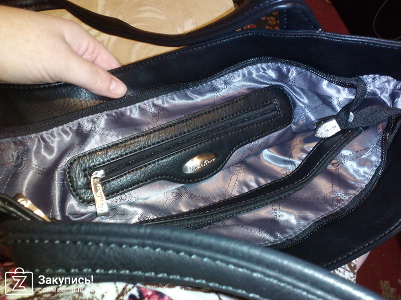 Еще одна черненькая сумочка простенькая, бренд неизвестен. Компактная, мягкая, с двумя ремешками, по бокам дополнительные кармашки на замочках, внутри материал попроще. Но за такую цену просто миленькая)