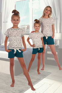 ESENIA Костюм домашний из 100% хлопка зелёный с мишками