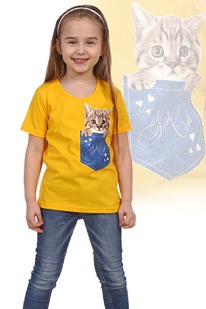 Футболка с кошечкой 100см (7) 110см (9) 120см (11) 130см (13) 140см (15),три цве