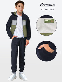 ESENIA Костюм спортивный детский утепленный из футера с начёсом - Оливковый