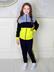 Спортивный костюм М-1115: Антрацит / Чёрный / Лимон