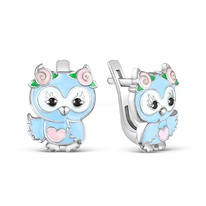 Серьги детские из серебра с эмалью, фианитами и позолотой родированные 925 пробы