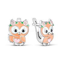 Серьги детские из серебра с эмалью и позолотой родированные 925 пробы 2-3393р
