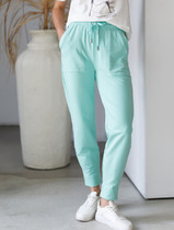 Брюки прямые спортивные из трикотажного полтна футер. По талии притачной пояс на внутренней резинке. Боковые карманы с отрезным бочком. Боковые швы переходят на перед.