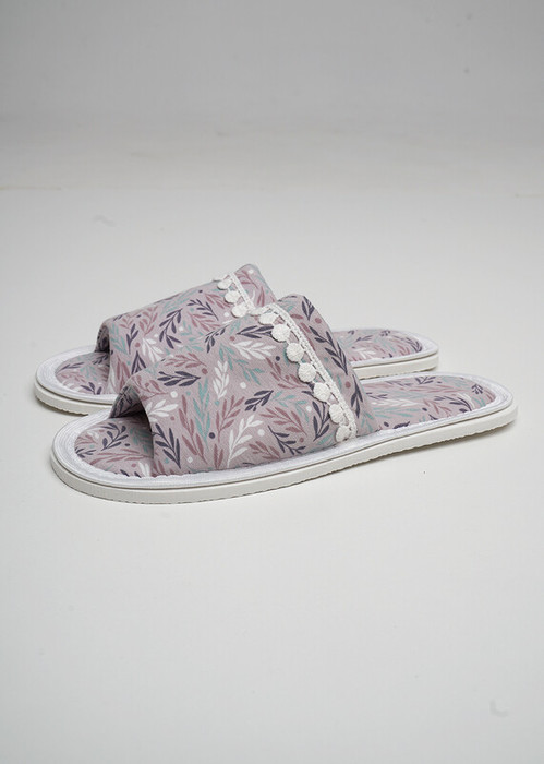 Домашние тапочки с открытым носом из хлопкового трикотажного полотна с эластаном, сверху узкое кружево. Толстая подошва.