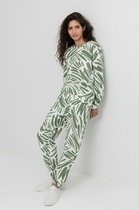 Брюки изготовлены из трикотажного полотна футер. Брюки свободного силуэта. Сиденье немного спущено. В боковых швах обработаны карманы. Подкладка карманов из кулирки.