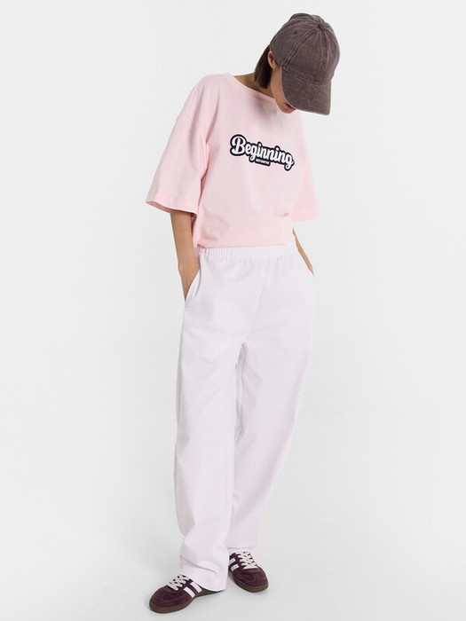 Брюки свободного силуэта из ткани. Пояс цельнокроеный с эластичной тесьмой внутри. По поясу проложены отделочные строчки. Карман в боковом шве. На передних половинках в районе колен заложены складки.  Нижние срезы обработаны швом вподгибку, подгибка широкая.