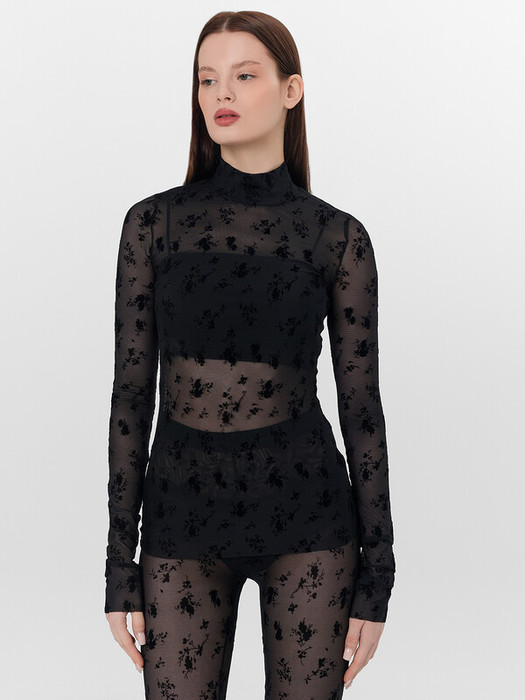 Джемпер женский прилегающего силуэта из трикотажного полотна сетка. Горловина круглой формы, с воротником стойкой. Рукав втачной длинный. Джемпер полной длины. Низ джемпера и рукавов сырой срез.