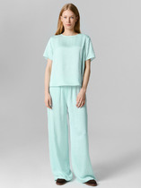 Лёгкие комфортные брюки из набивного трикотажа супрем. Модель с поясом на резинке и боковыми карманами. Низ изделия обработан плоскими швами. Гладкий материал приятен к телу, не теряет форму и позволяет коже дышать.